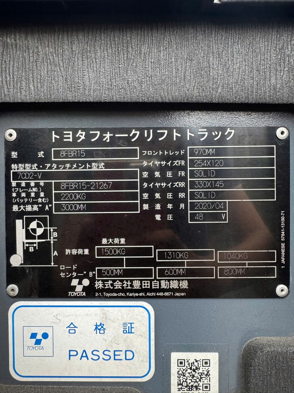 Model: TOYOTA 8FBR15