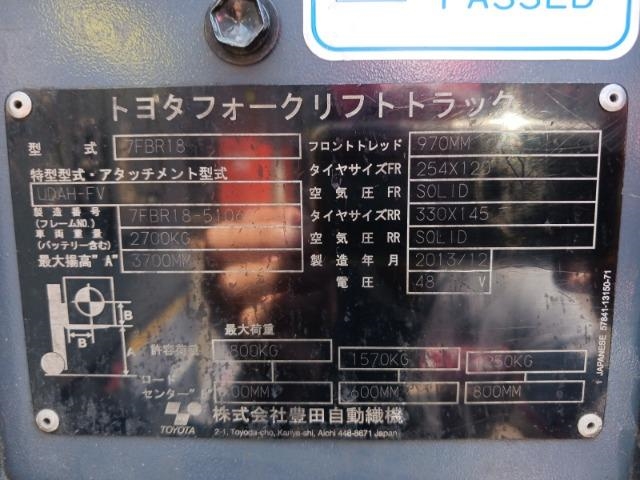 Xe Nâng Điện cũ đứng lái 1.8T Toyota 7FBR18 – Hàng Nhật Bãi, sản xuất 2013, mã xe TV.E350