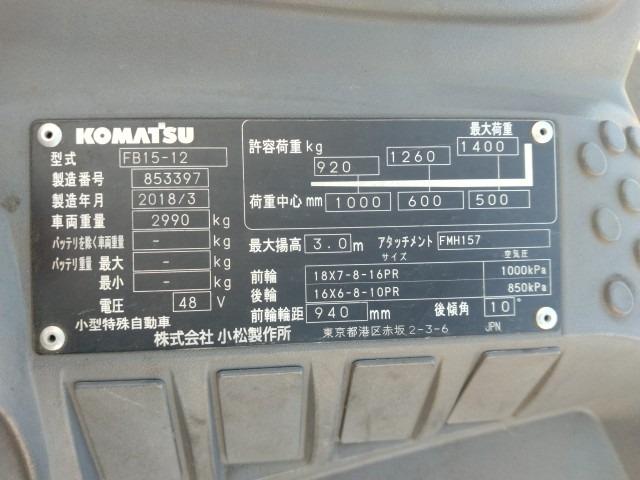 Xe Nâng Điện Ngồi Lái Komatsu 1.5 Tấn FB15-12 (Đời 2018) – Mã TV.E474: Bền Bỉ & Hiệu Quả