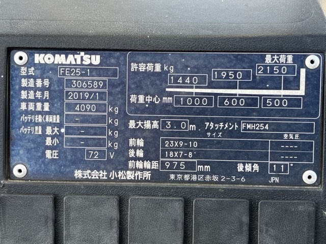 Xe Nâng Điện Cũ Ngồi Lái 2.5 Tấn Komatsu FE25-1 (Mã TV.E434)