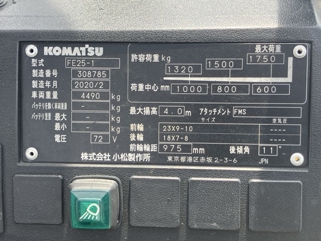 • Model: FE25-1 (Dòng xe nâng điện tân tiến nhất của Komatsu)