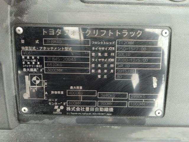 Xe nâng điện cũ ngồi lái 4.0T, TOYOTA 7FBM40, hàng đã qua sử dụng (Nhật Bản),sản xuất năm 2015,mã xe TV.E369