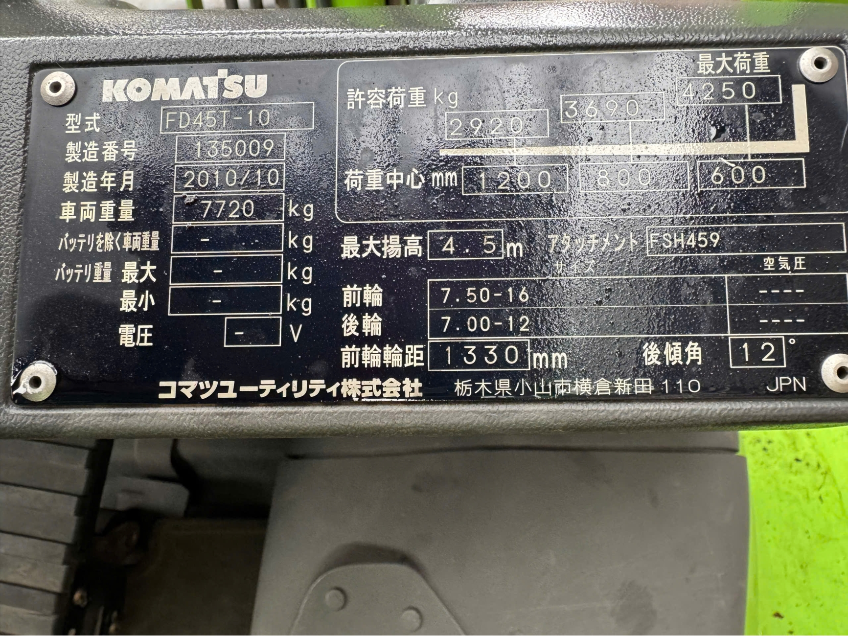 Xe Nâng Dầu Nhật Bãi 4.5T Komatsu FD45T-10 – Hàng Đã Qua Sử Dụng (Nhật Bản) 2010 | Mã TV.D094