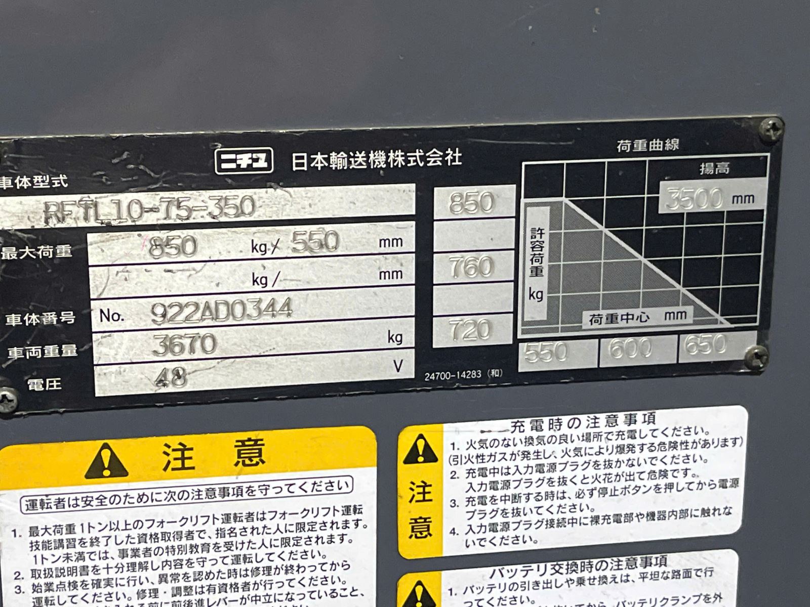 Xe Nâng Điện cũ đứng lái 1.0T, Nichiyu RFTL10-75-350 hàng Nhật Bãi chưa qua sử dụng tại Việt Nam