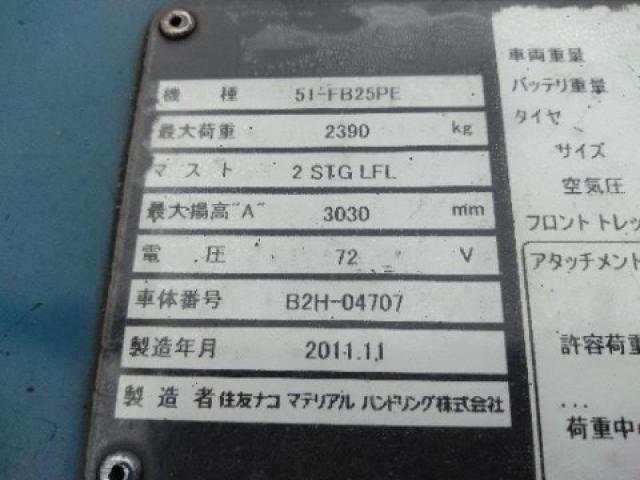 Xe nâng điện cũ ngồi lái 2,5T SUMITOMO 51-FB25PE, hàng đã qua sử dụng (Nhật Bản),sản xuất năm 2011,mã xe TV.E421