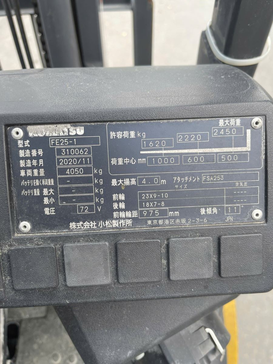 Xe nâng điện cũ ngồi lái 2.5T Komatsu FE25-1 – Đời 2020, hàng Nhật bãi chất lượng